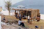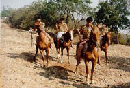 Mas apesar desta proposta, de todo este tratamento quase documental, este é um filme de ficção, que teve problemas de produção complicados como são, em geral, os problemas de produção de um filme de época. Nós, por exemplo, fomos obrigados a construir uma aldeia cenográfica, o que foi um trabalho do departamento de arte bastante difícil. Nós não podíamos filmar na reserva. Primeiro, porque a reserva hoje se assemelha a qualquer aldeamento do interior, com algumas casas de alvenaria e muitas palhoças, que lembram apenas remotamente as cabanas originais dos kadiwéu. Segundo, porque a estrada que leva à aldeia é péssima. Seria impossível passar com caminh›es e a nossa maquinaria. Finalmente, porque não queríamos "agredir" a reserva com a força de uma filmagem. Como a maior parte dos índios têm contato com as cidades vizinhas, não sendo portanto uma novidade a ida-e-vinda, resolvemos construir uma aldeia cenográfica na cidade de Bonito, nas proximidades da reserva e uma das regi›es, como diz o nome, mais bonitas do estado. A aldeia foi construída a partir das informaç›es da bibliografia branca e da pesquisa realizada junto aos antigos.