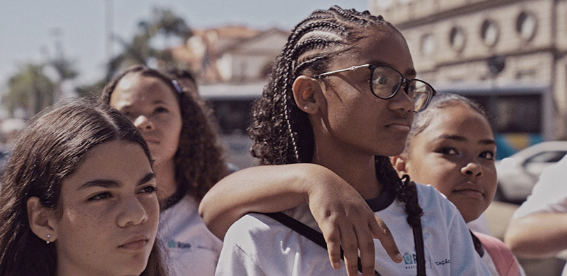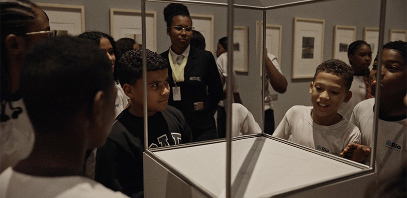 School 1 ▷ School 2 ▷ School 4The Luís de Camões School, located in Colégio, a suburb of Rio de Janeiro, was concerned with discussing issues that interested us, such as racism, in the classroom. We were able to record this discussion and this work in a classroom, as well as accompanying a class that went to the Banco do Brasil Cultural Center to see an exhibition of contemporary art.